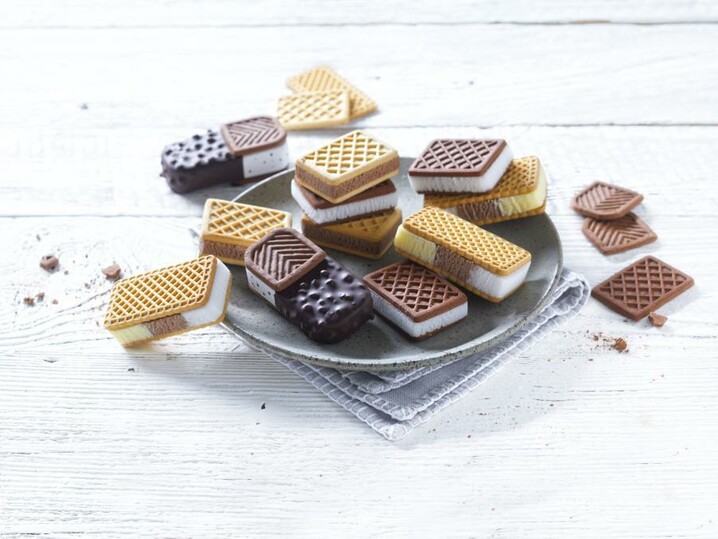 Mini granbiscotto: Gelato alla stracciatella tra due biscotti per metà ricoperto con copertura con cioccolato fondente, granella di nocciole e pezzetti di biscotto. Biscottino: Gelato al gusto di vaniglia tra due biscotti. Biscottino cioccolato: Gelato al cioccolato tra due biscotti. Mini biscotto tre gusti: Gelato al gusto di vaniglia (21%), gelato al gusto di zabaglione (21%) e gelato al cioccolato (21%) tra due biscotti.